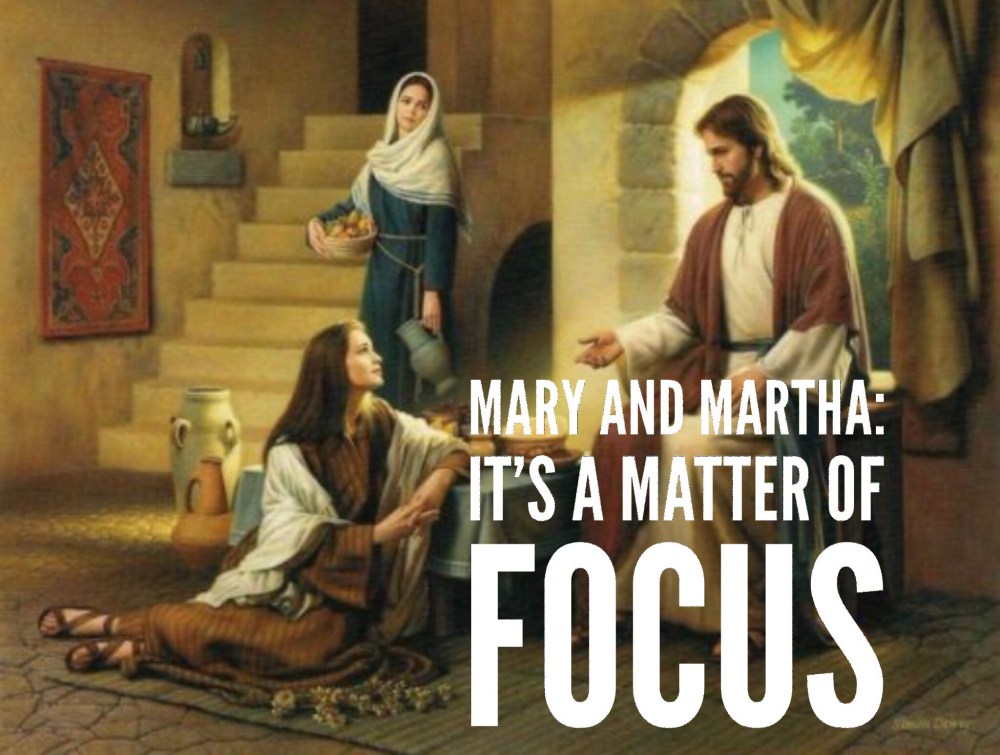 This passage is about focus! It’s not about stopping, having a quiet time, and it’s not about personality types. This passage is all about whether you have placed your focus and faith in Christ and what He did or whether you have placed your focus and faith in your self and what you do. This is not talking about for salvation because the only way to salvation is to place your faith in Jesus as the Son of God. (Ephesians 2:8) This passage is symbolic of whether or not, as a believer, you think you must work (do good deeds and have good disciplines) to stay right with God. Or do you believe that Jesus’ work on the cross alone paid for your right standing with God once for all time? See, both Mary and Martha represent believers. Martha represents carnal Christians – those focusing on the importance of their works and obedience to all the rules after their salvation. While Mary represents Christians at rest in the work Jesus completed on the cross. Of course work has to be done! Houses have to be cleaned, meals have to be cooked, grass has to be mowed, people need to be loved, and trespassers need to be forgiven! The issue isn’t about not doing anything and just resting, the issue is the state of their souls. The difference is their focus. Martha is focused on accomplishing the good works in her strength and Mary is focused on Jesus.