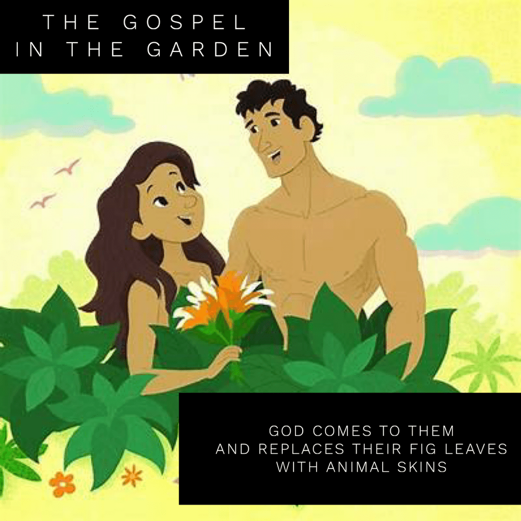 Remember this sentence – God then comes to them and replaces their fig leaves with animal skins.